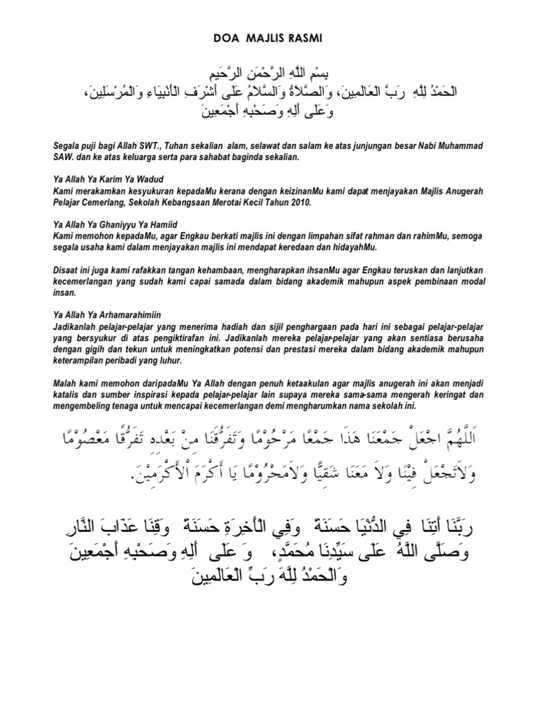 Doa Doa Majlis Rasmi Sekolah Pdf Document